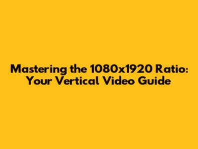 1080x1920 Ratio: Vertical Video Guide