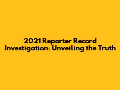 2021 Reporter Record Investigation: Unveiling The Truth