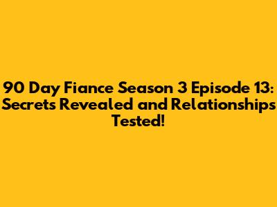 90 Day Fiance Season 3 Episode 13 was an emotional rollercoaster, packed with drama, secrets, and life-altering decisions. We witnessed the couples face their biggest challenges yet, and the tension was palpable. The 90-day deadline loomed over them, forcing them to make difficult choices. Some couples' relationships were tested, while others grew stronger. The episode left us wanting more. We can't wait to see what happens next. The show is always full of surprises. Stay tuned for more drama!