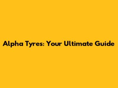 Alpha Tyres: Your Ultimate Guide