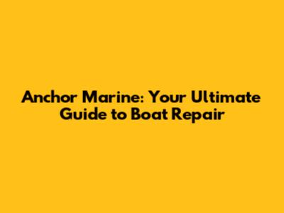 Anchor Marine: Your Ultimate Guide To Boat Repair