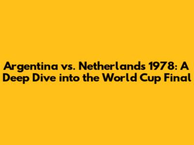 Argentina Vs. Netherlands 1978: The Full Story