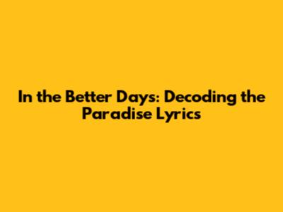 Better Days: Decoding The Paradise Lyrics