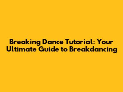 Breaking Dance Tutorial: Your Ultimate Guide To Breakdancing