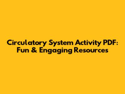 Circulatory System Activities PDF: Fun & Engaging Resources