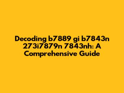 Decoding B7889 Gi B7843n 273i7879n 7843nh: A Comprehensive Guide