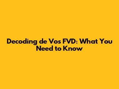 Decoding De Vos FVD: What You Need To Know