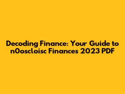 Decoding Finance: Your Guide To N0oscloisc Finances 2023 PDF