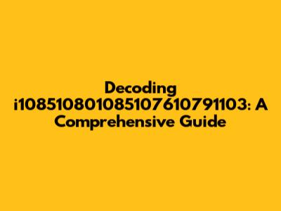 Decoding I108510801085107610791103: A Comprehensive Guide