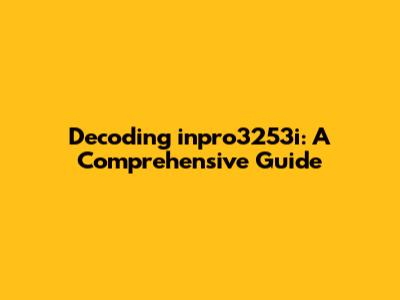 Decoding Inpro3253i: A Comprehensive Guide