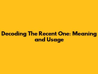 Decoding 'The Recent One': Meaning And Usage