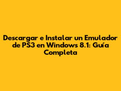 Descargar E Instalar Un Emulador De PS3 En Windows 8.1: Guía Completa