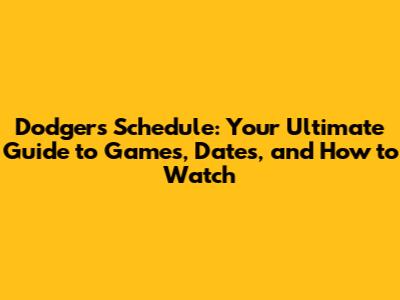 Dodgers Schedule: Games, Dates, And How To Watch