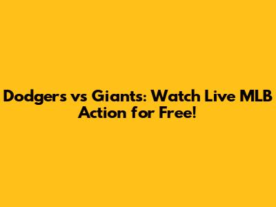 Dodgers Vs Giants: Watch Live MLB Action For Free!