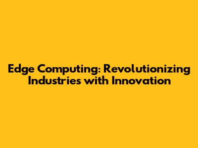 Edge Computing: Revolutionizing Industries With Innovation