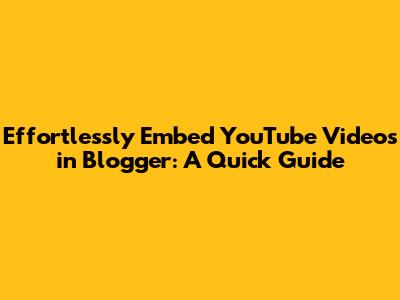 Effortlessly Embed YouTube Videos In Blogger: A Quick Guide
