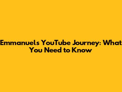 Emmanuel's YouTube Journey: What You Need To Know