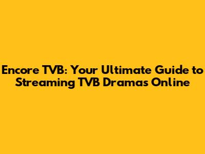 Encore TVB: Your Ultimate Guide To Streaming TVB Dramas Online