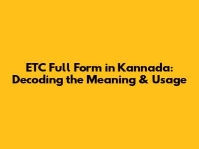 ETC Full Form In Kannada: Decoding The Meaning & Usage