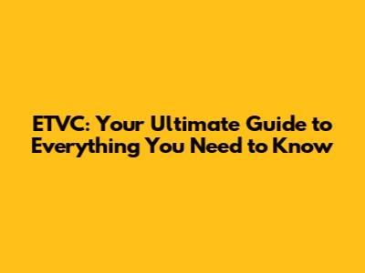 ETVC: Your Ultimate Guide To Everything You Need To Know