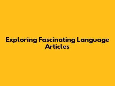 Explore Fascinating Language Articles