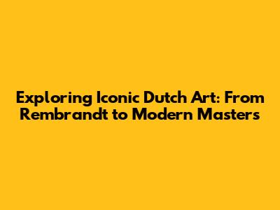 Exploring Iconic Dutch Art: From Rembrandt To Modern Masters