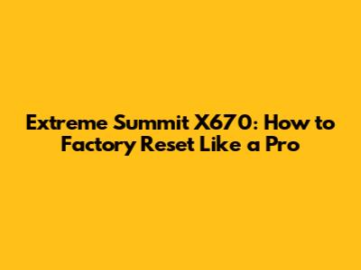 Extreme Summit X670: How To Factory Reset Like A Pro