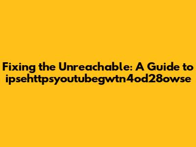 Fixing The Unreachable: A Guide To Ipsehttpsyoutubegwtn4od28owse