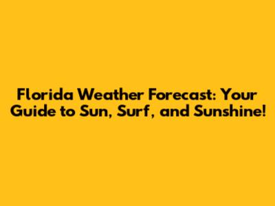 Florida Weather Forecast: What You Need To Know