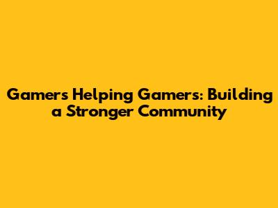 Gamers Helping Gamers: Building A Stronger Community