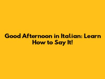 Good Afternoon In Italian: Learn How To Say It!