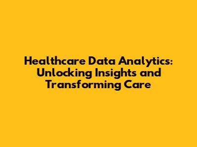 Healthcare Data Analytics: Unlocking Insights And Transforming Care