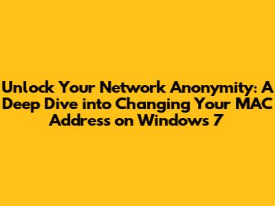 Hey guys, ever wondered about changing your MAC address on your Windows 7 PC? You might have heard about it, maybe for privacy reasons, network troubleshooting, or even for fun. Well, you've landed in the right spot! Today, we're going to break down exactly how to change your MAC address on Windows 7. It's not as complicated as it sounds, and by the end of this, you'll be a MAC address-changing pro. We'll cover why you might want to do this, the steps involved, and some important things to keep in mind. So, buckle up, and let's get your network identity sorted!