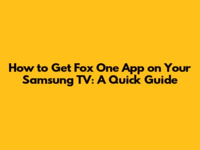 How To Get Fox One App On Your Samsung TV: A Quick Guide