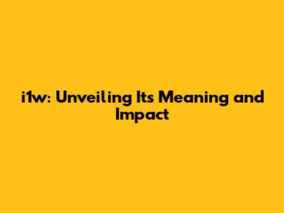 I1w: Unveiling Its Meaning And Impact