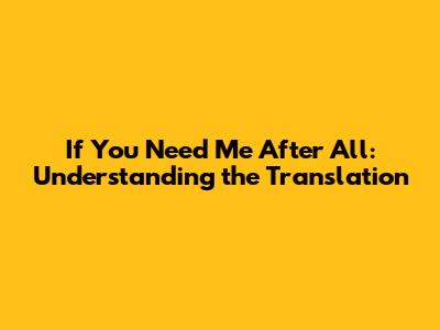 Hey guys! Ever stumbled upon a song or phrase in another language and thought, "I need to know what this means!"? Today, we're diving deep into the meaning and translation of the phrase "If you need me after all." It sounds simple, right? But the nuances of language can make even straightforward phrases pack a serious emotional punch. So, grab your metaphorical translator, and let’s break it down. We'll explore the different ways to translate this phrase, the contexts in which it might be used, and the feelings it evokes. Buckle up; it's going to be a linguistic adventure!