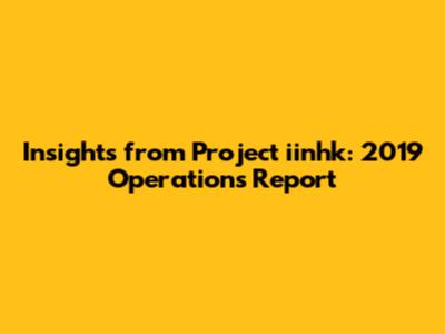 Insights From Project Iinhk: 2019 Operations Report