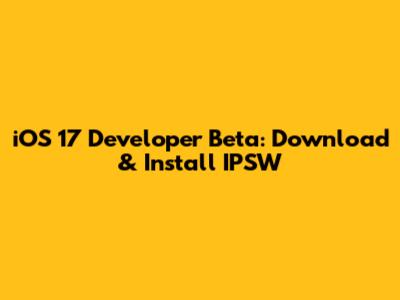 IOS 17 Developer Beta: Download & Install IPSW