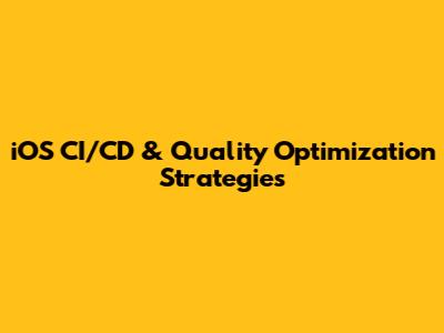 IOS CI/CD & Quality Optimization Strategies