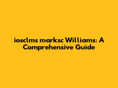 Iosclms Marksc Williams: A Comprehensive Guide