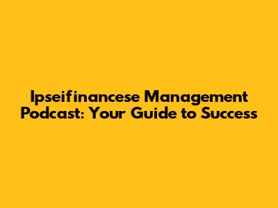 Ipseifinancese Management Podcast: Your Guide To Success