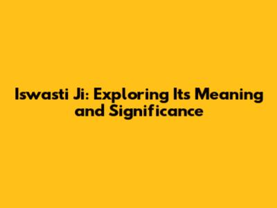 Iswasti Ji: Exploring Its Meaning And Significance