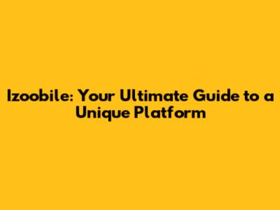 Izoobile: Your Ultimate Guide To A Unique Platform