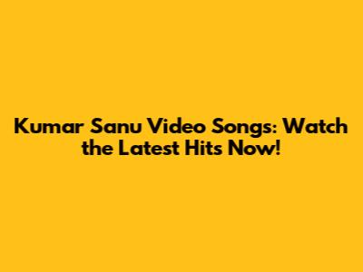 Kumar Sanu Video Songs: Watch The Latest Hits Now!