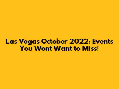 Las Vegas October 2022: Events You Won't Want To Miss!