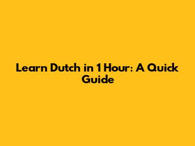 Learn Dutch In 1 Hour: A Quick Guide