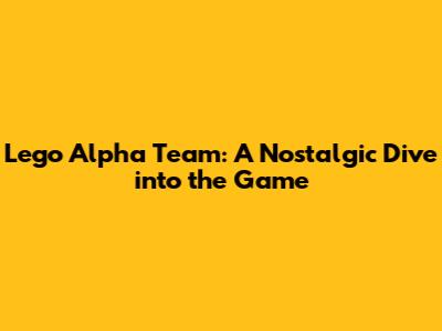 Lego Alpha Team: A Nostalgic Dive Into The Game