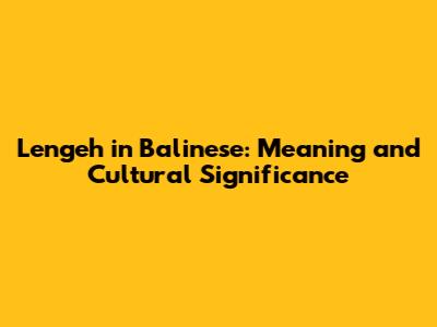 Lengeh In Balinese: Meaning And Cultural Significance