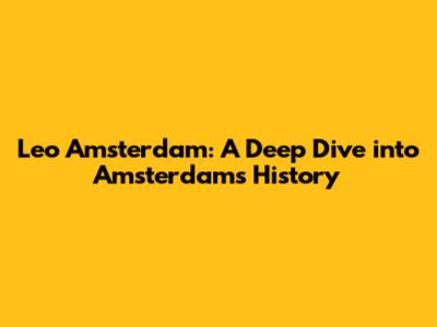 Leo Amsterdam: A Deep Dive Into Amsterdam's History