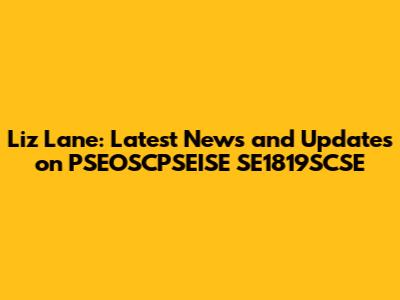 Liz Lane: Latest News And Updates On PSEOSCPSEISE SE1819SCSE
